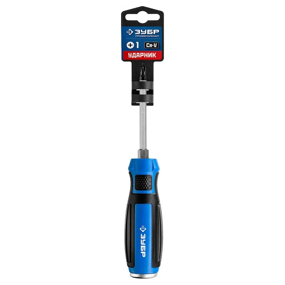 Отвёртка ударная ,сквозной Cr-V стержень, РНх75мм,усилитель под ключ, ЗУБР Проф. "УДАРНИК" 25272-1