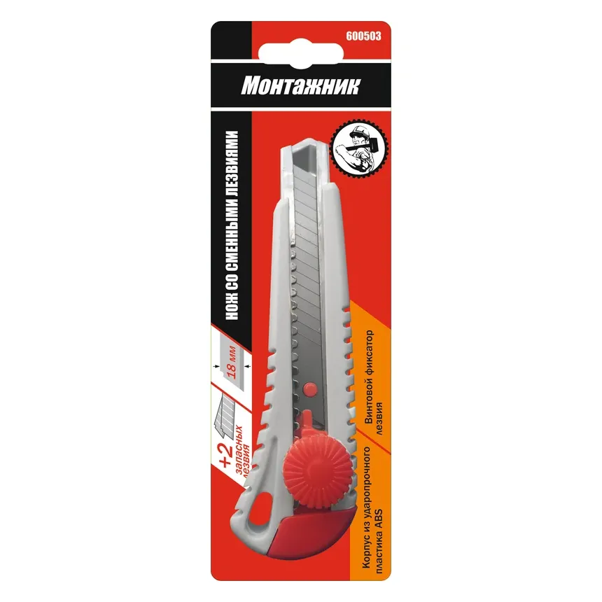 Нож со смен. лезв., 1+2 лезв.18мм, PP пластик, винт. фиксатор "Монтажник" 600503KZ