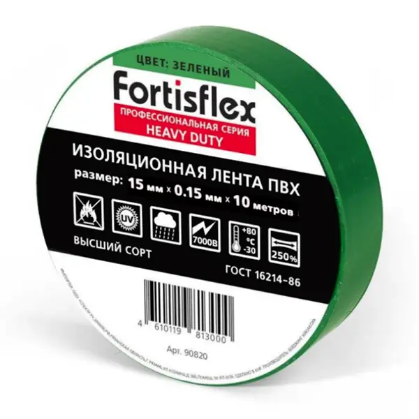 Изолента ПВХ 15х0,15х10 зеленая 71225 (Fortisflex) 0850